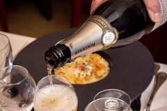 Sie erkunden die Speisekarte, geben Ihre Bestellung auf und genießen ein Glas Champagner als Aperitif.